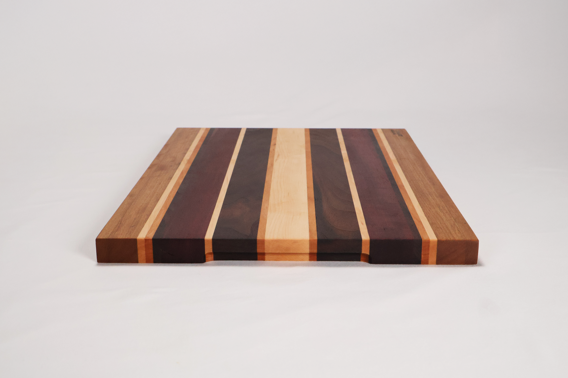 Handmade from a polished selection of timber, each board is uniquely patterned with striking contrast and natural elegance. The streaks of South American purple heart are pronounced by European Beach, African Wenge, US Cherry, Walnut, all held together by our very own Australian Spotted Gum